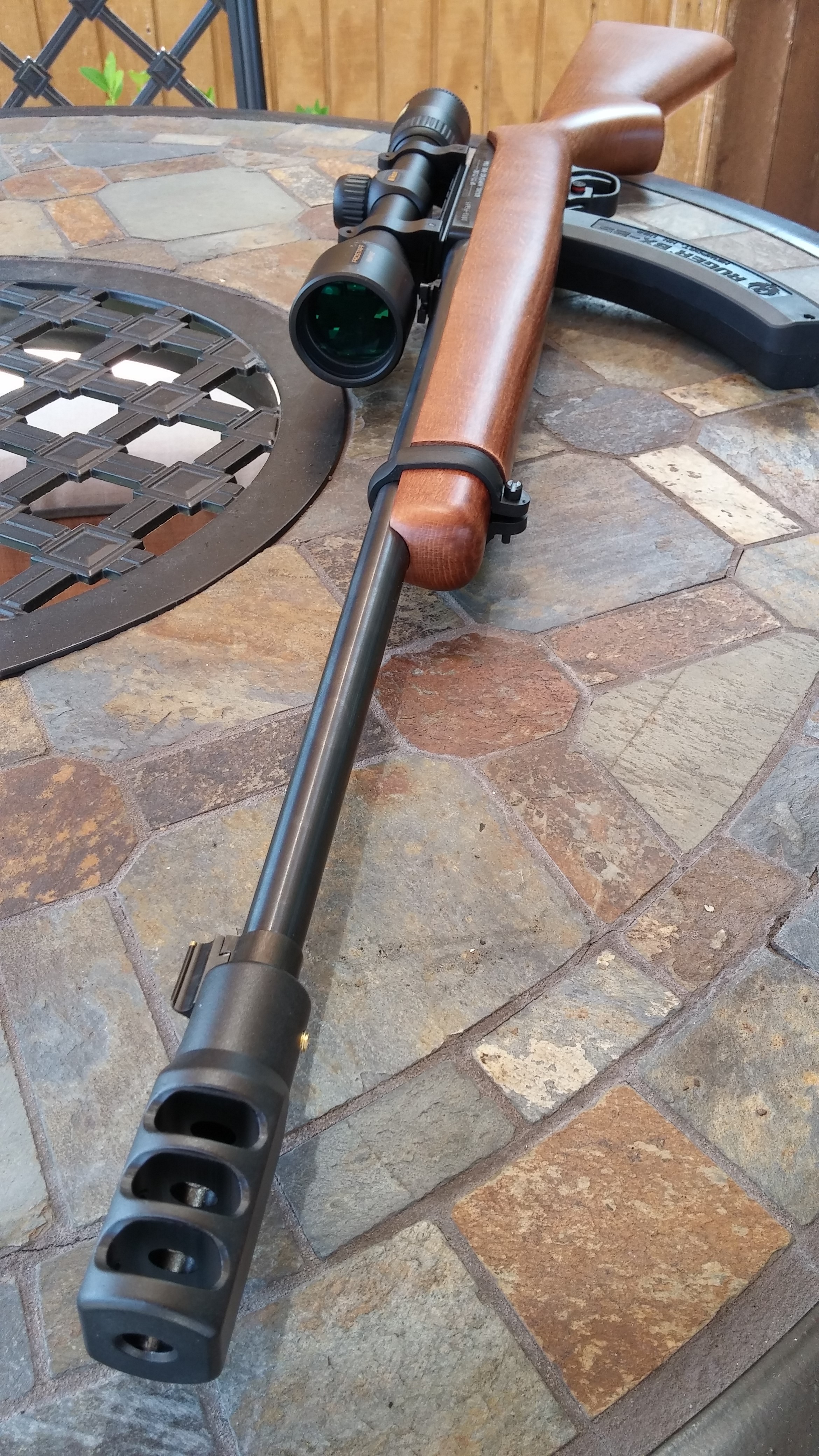 Ruger 10-22 rifle, with scope, 30 round mag, and flash suppressor.