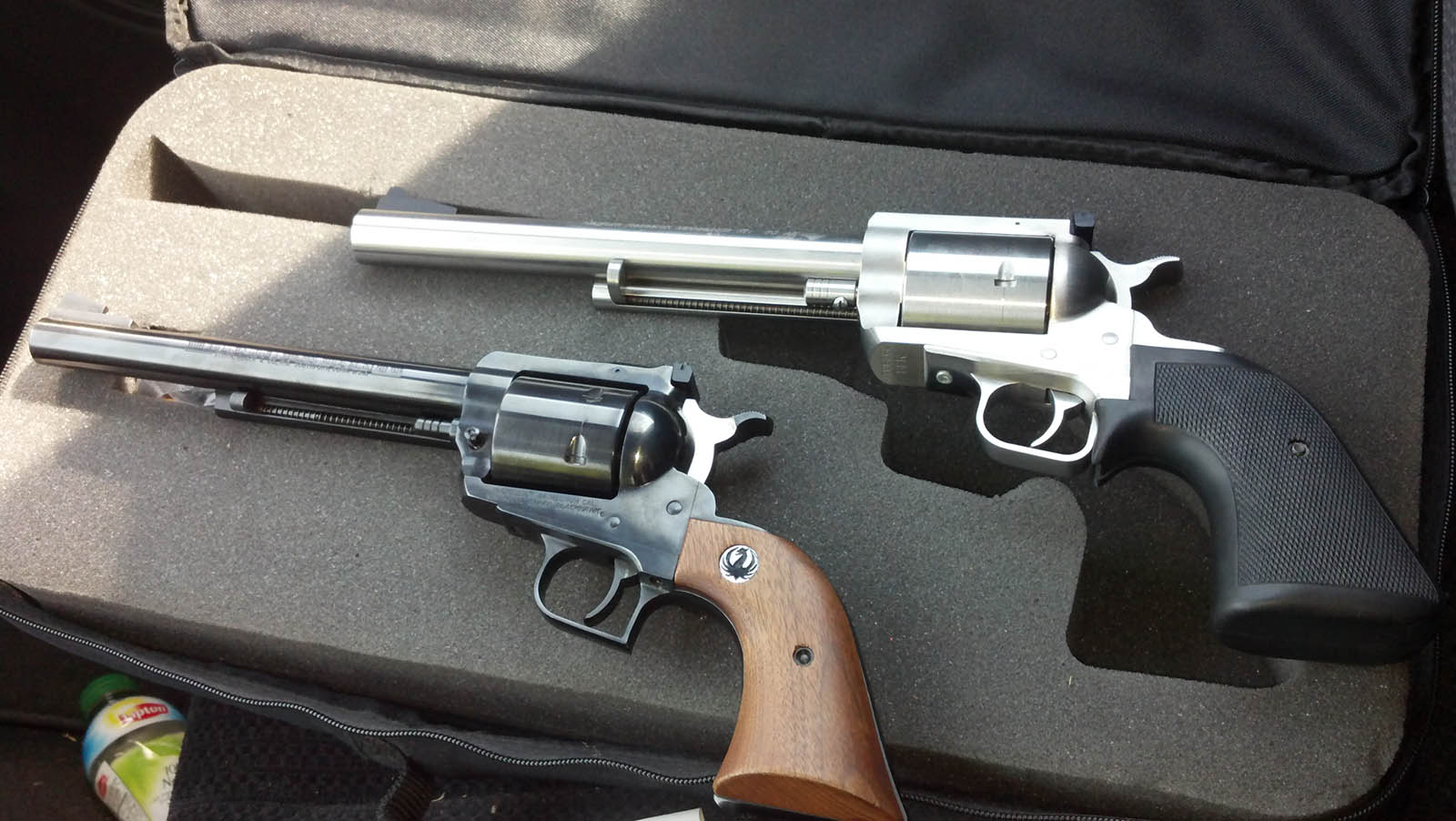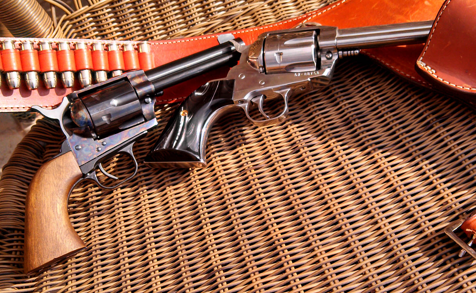 EAA Bounty Hunter .45 Long Colt, and Ruger (old model) Vaquero .45Long Colt single action revolvers.